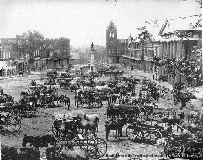 Sale Day, Spartanburg, 1881 Photograph courtesy of the Herald-Journal Willis Collection, Spartanburg County (SC) Public Libraries. | |