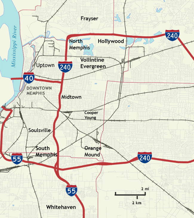 Map of Memphis Neighborhoods (Base Map Data: US Census Bureau) |