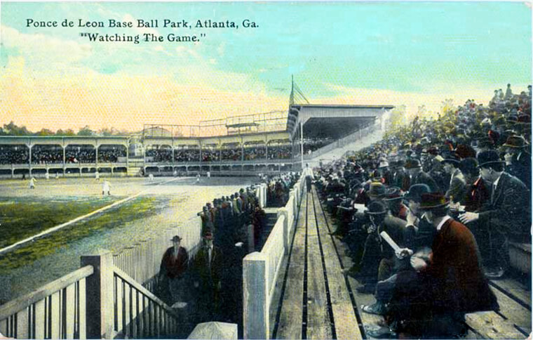 "Watching the Game" Ponce de Leon Ball Park postcard, circa 1915 |