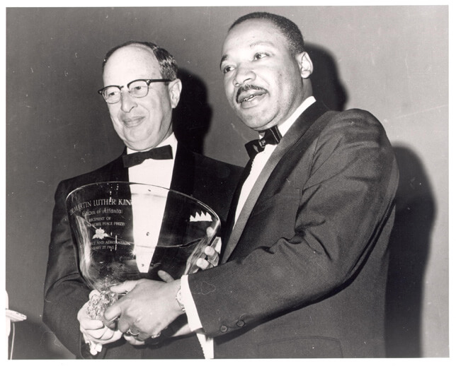 Jacob Rothschild and Martin Luther King, Jr. at the Nobel Peace Prize dinner in January 1965. |