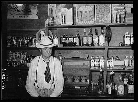 Russell Lee, Library of Congress, Prints & Photographs Division FSA-OWI Collection Reproduction Number: LC-USF34-031581-D DLC, Cajun proprietor of barroom, Crowley, Louisiana, 1938.