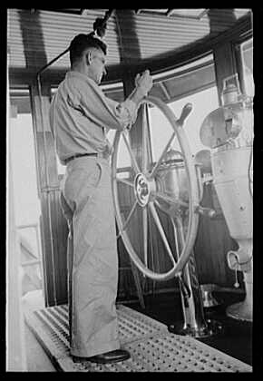 Russell Lee, Library of Congress, Prints & Photographs Division FSA-OWI Collection Reproduction Number: LC-USF33-011806-M4 DLC, Tugboat captain on Mississippi River, 1938.