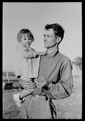 Russell Lee, Library of Congress, Prints & Photographs Division FSA-OWI Collection Reproduction Number: LC-USF33-011882-M5 DLC, Cajun farmer with daughter, Near New Iberia, Louisiana, 1938.
