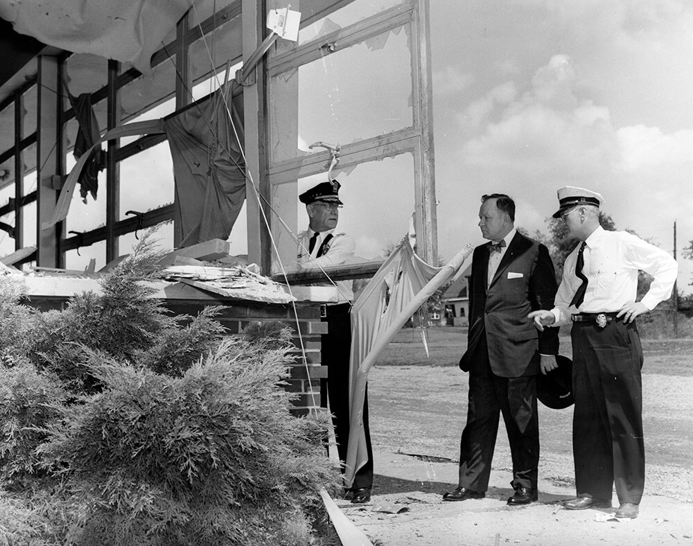 During the morning, Criminal Court Judge Charles Gilbert showed deep indignation as he instructed the county grand jury to investigate the bombing and bring "the midnight assassins" to justice. Noting that he had "lived in this peaceful community most of my life," Gilbert said he "never dreamed or imagined a horrible thing like this" could ever happen. The question at hand now, he told the jurors, "is not whether we are to have integration or segregation. The question now is, Are we to have a reign or terrorism and anarchy or are we to have law and order?"