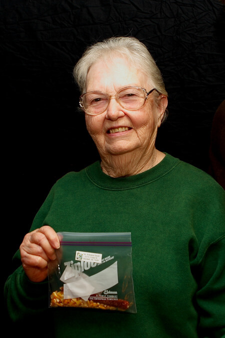 John Hammer, Bo Bennett, UCA student, holding okra seed (left). He traded his grandfather’s Moon and Stars watermelon seed at the Swap. Victor Garcia of Independence County, Arkansas, and Kent Bonar, of Newton County, Arkansas (center). Willodean Smyth with her family heirloom variety Pencil Cob Corn (right). Ozark Seed Swap, Mountain View, Arkansas, 2009. |