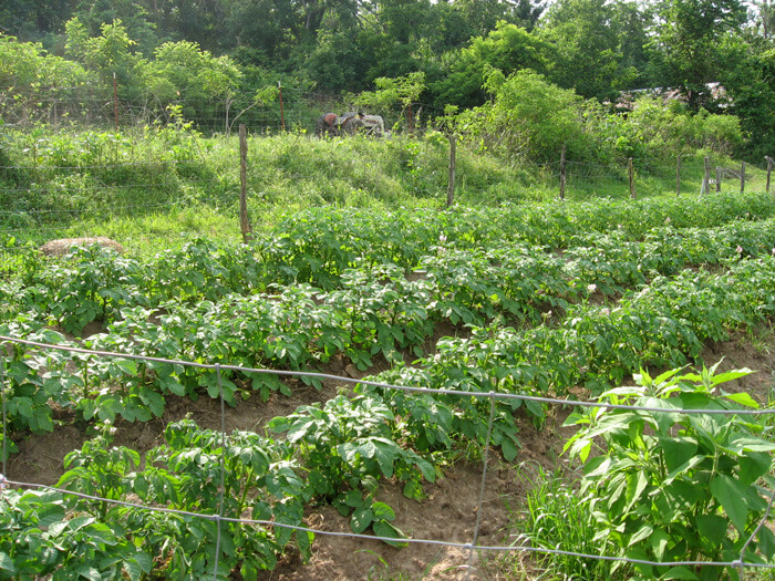 Agricultural biodiversity refers to human-modified components of biodiversity that contribute to the sustenance and health of human populations.8Shand, Human Nature. This includes the domesticated plants and animals that constitute the foundation of agriculture and the non-domesticated plants, shrubs, and trees utilized for subsistence and health and the related soil biota and insects necessary for plant propagation and reproduction.9T. Johns, I.F. Smith, P. Eyzaguirre, "Understanding the Links Between Agriculture and Health" IFPRI, 13 (2006), 12-16. Several approaches characterize agrobiodiverse farming systems: 1) polyculture; farmers grow an assortment of crop species within a field or agricultural landscape; 2) intraspecific diversity; more than one variety of a species exists in the fields; 3) wild-domesticated continuum; farmers allow non- and semi- domesticated species to grow within and around fields; and 4) utility diversity; species in the fields have multiple uses, as livestock feed and human food, medicine, dye, clothing, storage, cordage, etc.10M.A. Altieri, Agroecology: The Scientific Basis of Alternative Agriculture (Boulder: Westview Press, 1995). Shand, Human Nature. Farmers the world over engaged in such practices before the now ubiquitous modern industrial agricultural model replaced diversity and self-sufficiency with specialization.11Altieri, Agroecology. T. Smith and Eyzaguirre, 2006. Eugene Odum, Ecology: A Bridge Between Science and Society (Sunderland, Massachusetts: Sinauer Associates, Inc., 1997). When the farmer focuses strictly on large-scale production of one crop for the market, the animals that previously produced manure for fertilizer, in addition to their meat, eggs, milk, or labor, must now be replaced with tractors, chemical fertilizers, and store-bought food. If the farmer moves to large-scale animal production, s/he must purchase large amounts of feed and abandon diversified production of crops. Instead of using manure as fertilizer, it becomes a point-source pollutant, requiring extensive mitigation measures to prevent groundwater pollution. Either way, a loss of self-sufficiency results.