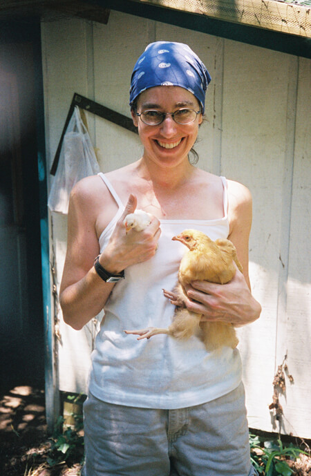 Bill DeLoach, Allison Adams with two of her first chicks, Isabel and Josephine, Decatur, Georgia, July 2004. |