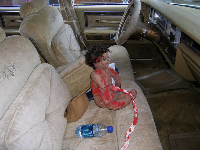 The work of ritual upon these potent “dreamscapes” requires physical elements that can be transacted and manipulated. Two highly charged objects--the automobile in which the victims are transported, and the doll used to represent Dorothy Dorsey’s unborn baby--help to mediate relations between the realms of the living and the non-living.