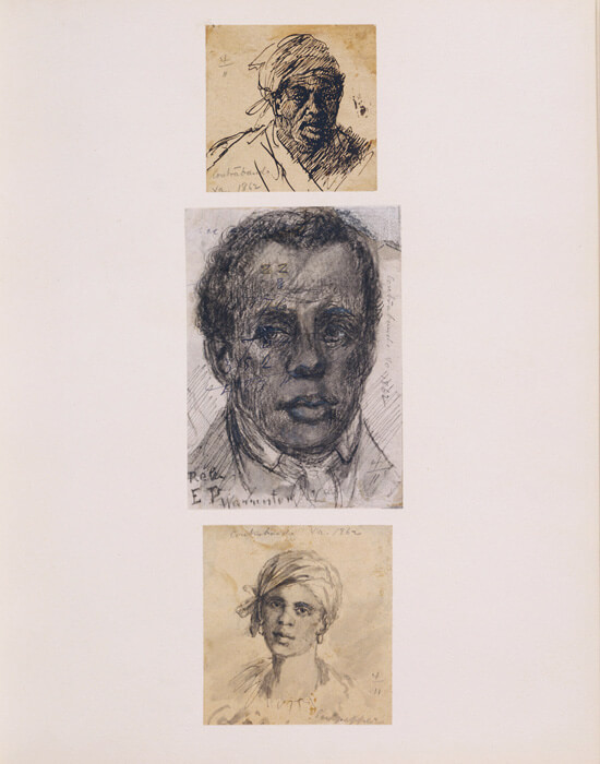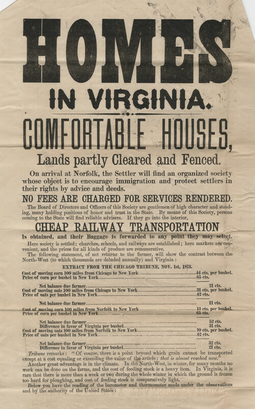 David Hunter Strother, Sketches of “contrabands,” enslaved African Americans who crossed into the federal lines, 1862. Courtesy of the Library of Virginia. | Homes Broadside, 1873. Courtesy of the Library of Virginia. |