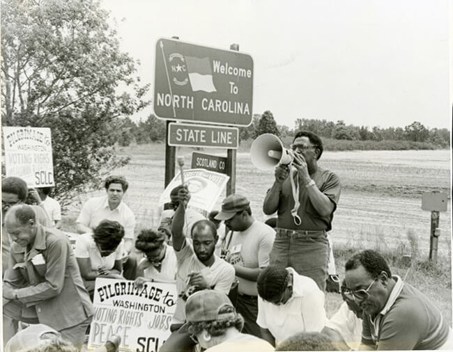 Elaine Tomlin, Joseph Lowery leading a prayer during the 1982 Pilgrimage to Washington for Voting Rights, Peace, Economic Justice, North Carolina, 1982. Courtesy of SCLC records, MARBL, Emory University.