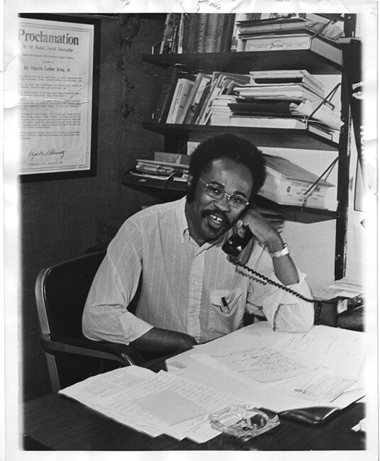 Fred Taylor at his desk at SCLC, circa 1970s. Courtesy of SCLC records, MARBL, Emory University.