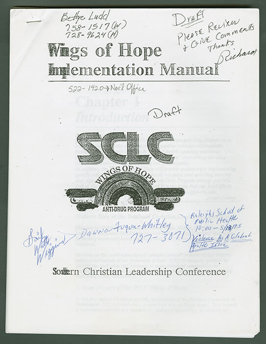 Draft of Wings of Hope Implementation Manual, circa 1995. Courtesy of SCLC records, MARBL, Emory University.