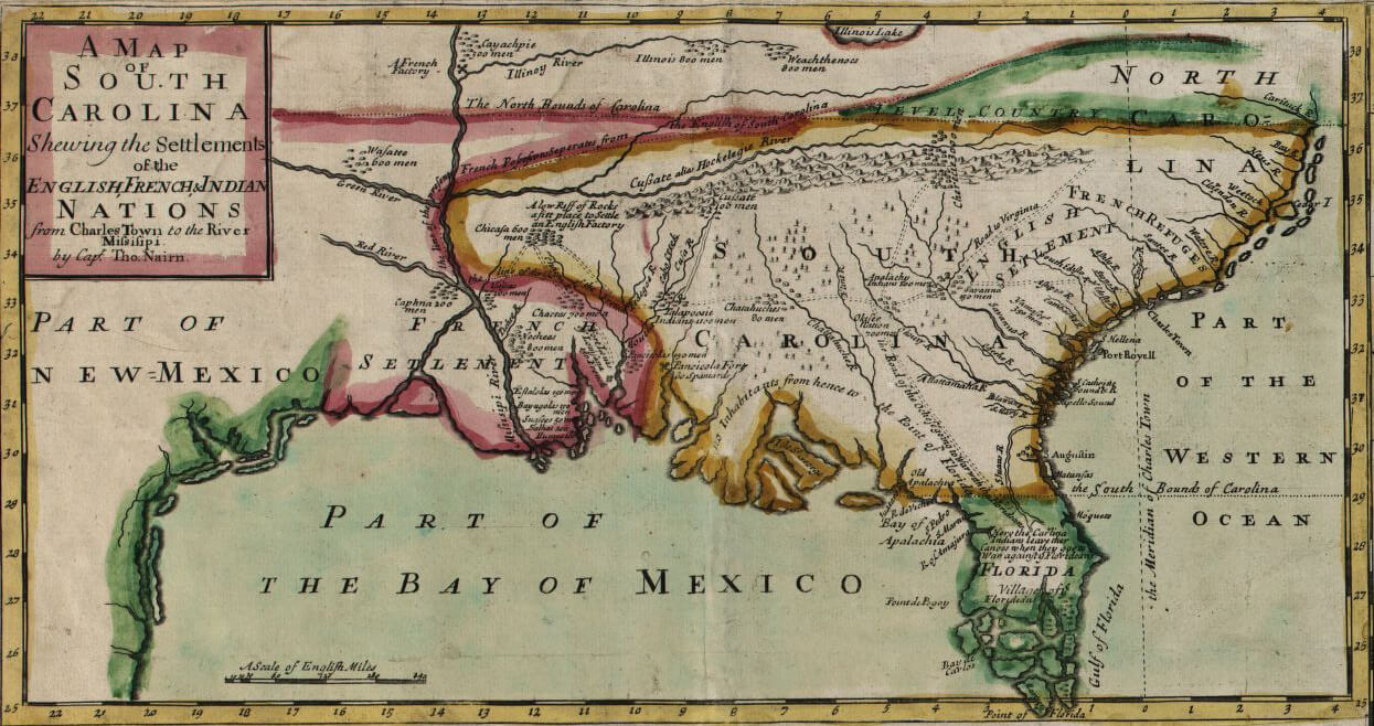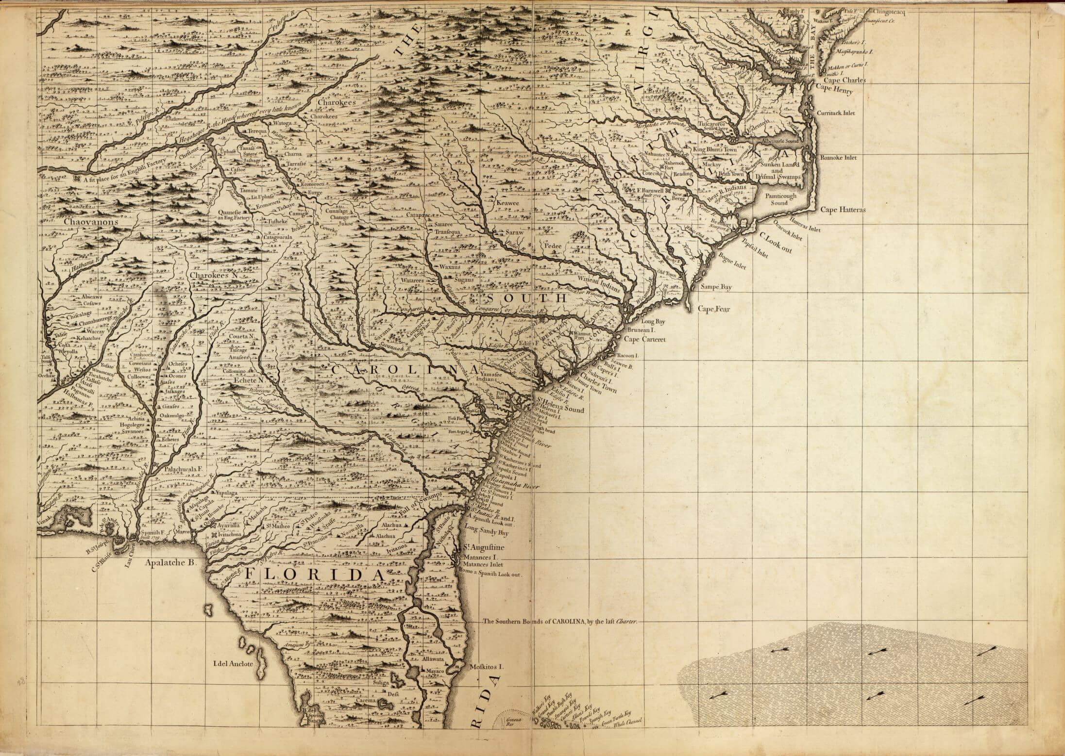 Edw. Crisp, Detail of A compleat description of the province of Carolina in 3 parts, the west part by Capt. Tho. Nairn, 1711. Library of Congress Geography and Map Division, 2004626926. |
