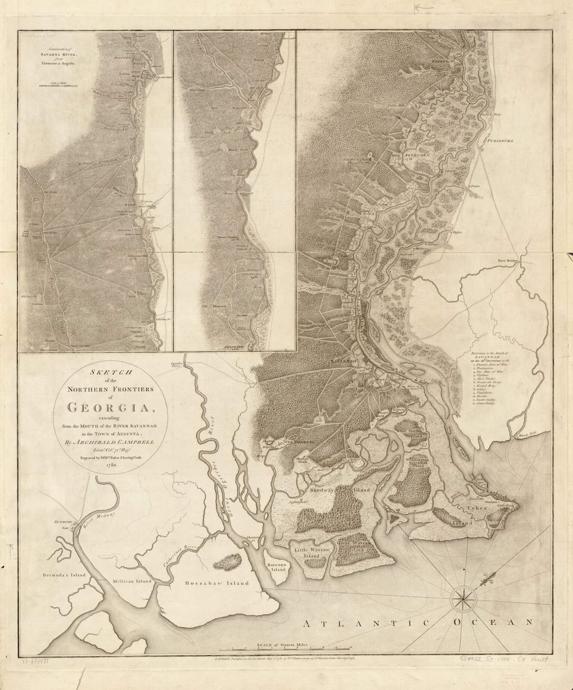 Archibald Campbell, Sketch of the northern frontiers of Georgia, extending from the mouth of the River Savannah to the town of Augusta, 1780. Library of Congress Geography and Map Division, 73694481. |