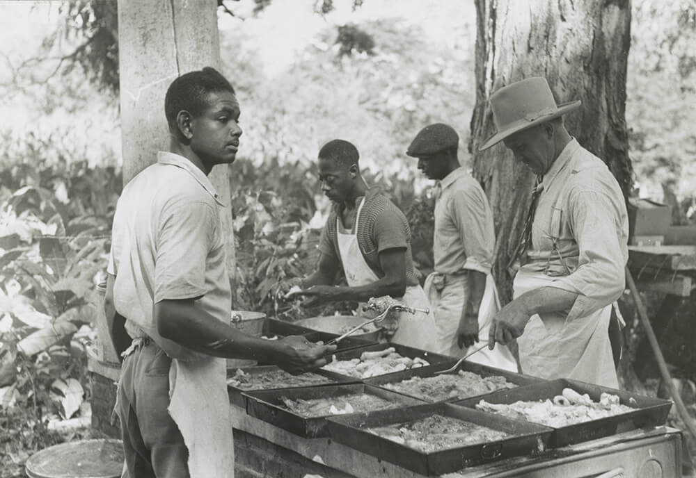 Marion Post Wolcott, Cooking a fried supper as a benefit picnic supper which is being given by St. Thomas church, near Bardstown, Kentucky, August 7, 1940. Library of Congress Prints and Photographs Division, FSA/OWI Collection, E 9026. |