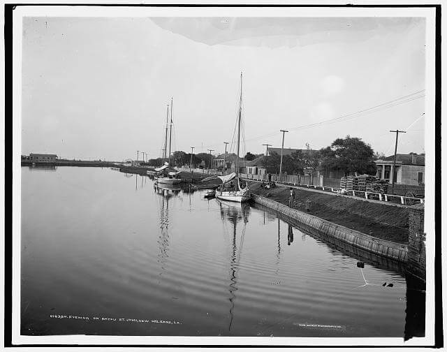 Evening on Bayou St. John, New Orleans, between 1900 and 1906. Library of Congress, Prints & Photographs Division, Detroit Publishing Company Collection, LC-D4-16350. |