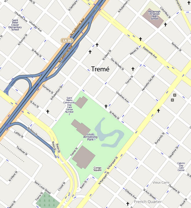 Map of the Neighborhood of Tremé. ©OpenStreetMap contributors, CC-BY-SA. |