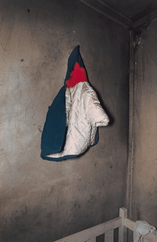 Like a 1936 Evans photograph from Hale County, Alabama, a 1970 photograph, Untitled (Near Jackson, Mississippi), depicts an intimate interior space where a piece of clothing hangs on a wall over a bed. Clothes and the intimate spaces inside homes where people live and sleep and dress are all Evans's subjects, but the materials the objects in Eggleston's image are made of—concrete walls and synthetic cloth—push the viewer into the 1970s. Color helps, and the red fleece lining of the coat's hood pops out against the coat's silvery white lining and navy exterior and the dirty, grey wall. Yet unlike Evans and photographer and filmmaker John Cohen, who worked in Appalachia in the 1960s, Eggleston shoots at an angle, incorporating corners—walls hitting the ceiling at the top and the corner of a baby bed at the bottom—into the right edge of his image. The corners of the photographic frame amplify the corners of the subject here, producing a sense of interior space and depth. In these images, Eggleston reworks subjects Evans shot from the front by shooting instead at odd angles and adding color and dimensionality.
