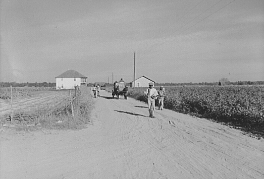 Wagonload of cotton coming out of the field in the evening. Mileston Plantation, Mississippi Delta, Mississippi, 1939. Photographic negative by Marion Post Wolcott. Courtesy of Library of Congress Prints and Photographs Division, FSA/OWI Black-and-White Negatives Collection, LC-USF34-052257-D. |
