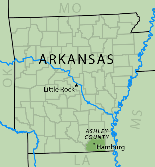 Map of the Ark-La-Miss Borders. The Martins grew up in the town of Hamburg in Ashley County, Arkansas. Map by Southern Spaces. |