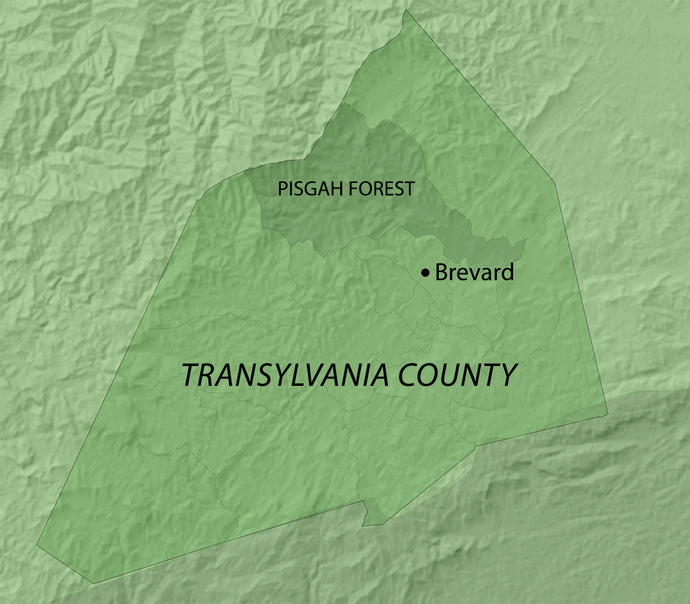 Location of Transylvania County in North Carolina (top) and location of the Pisgah Forest Precinct in Transylvania County, North Carolina (bottom). Maps by Southern Spaces, 2014. |