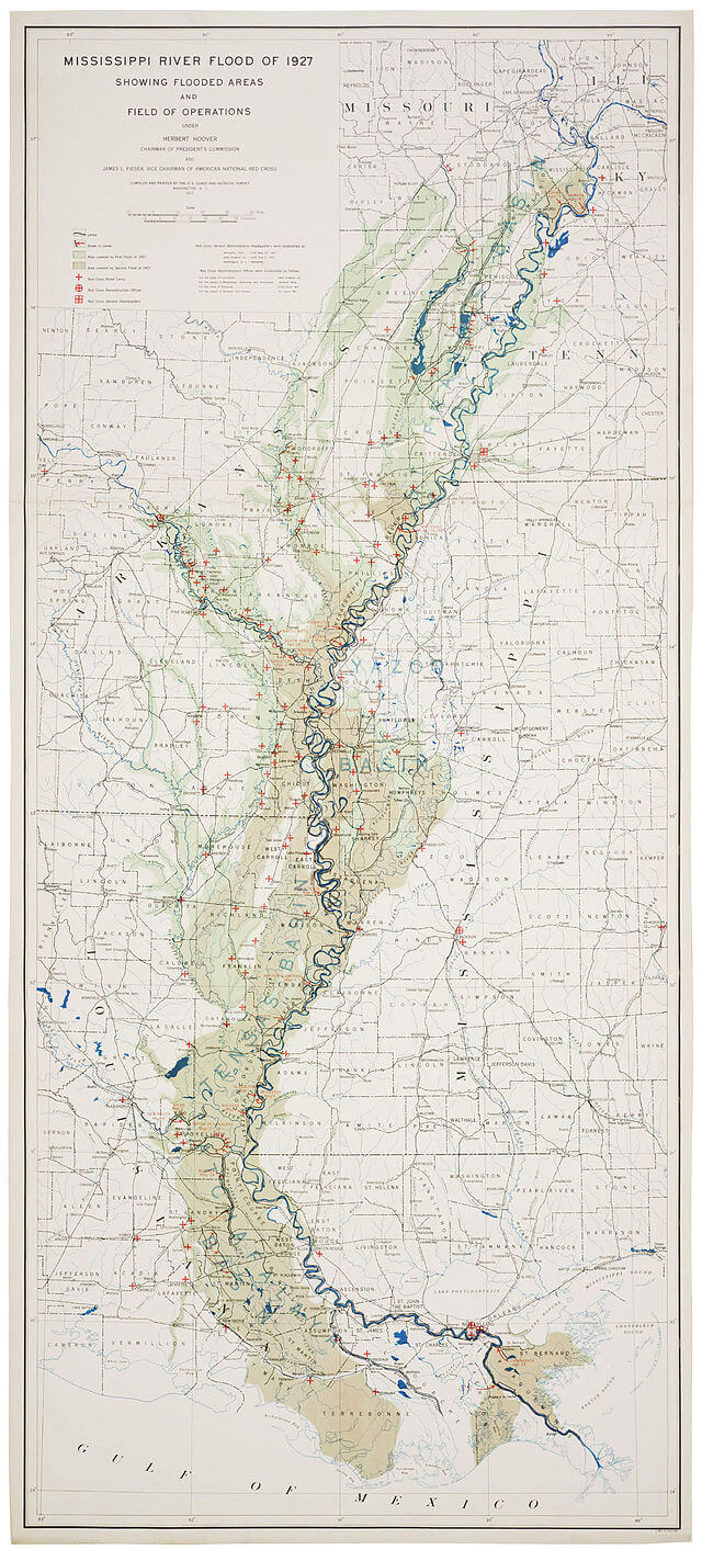 Mississippi River Flood of 1927 showing Flooded Areas and Field of Operations, 1927. Coast and Geodetic Survey. From Records of the Coast and Geodetic Survey, RG 23. |