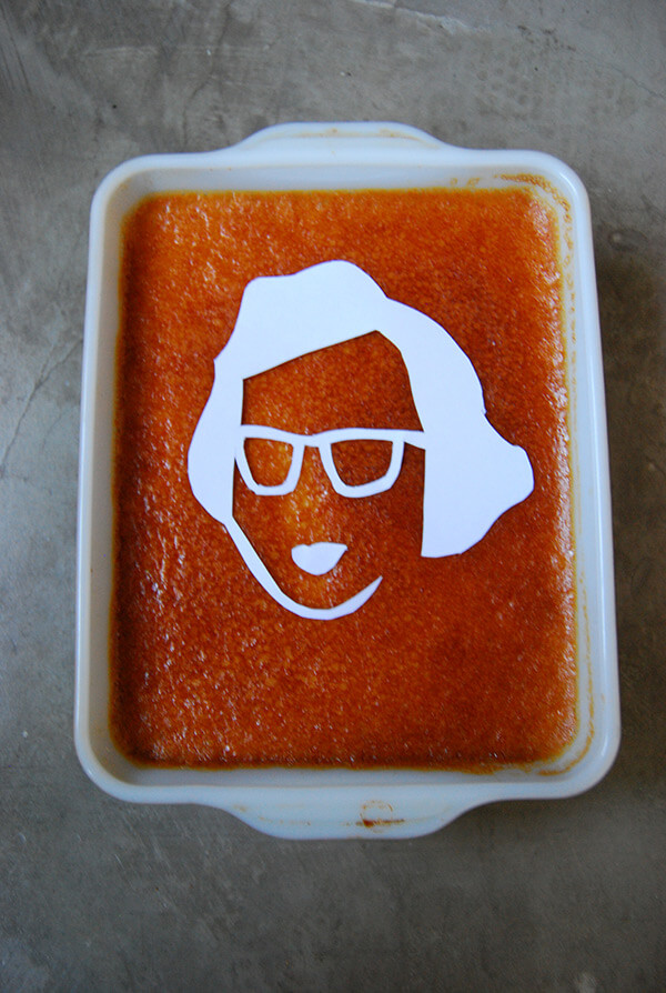 Recently, Brooke Hatfield, an avid O'Connor fan, designer, and artist, described O'Connor's legacy as "zine-inspiring." Released at the June 2014 Atlanta Zine Fest, one of Hatfield's passion projects, Scale Highly Eccentric: A Zine of Portraits of Flannery O'Connor, asks fourteen artists, utilizing a variety of mediums, to imagine their versions of O'Connor's iconic image.3The "esteemed zine artists" include: Ashley Anderson, Rebecca Bowen, Jenifer Carter, Alvin Diec, Travis Ekmark, Christine Ernest, Brooke Hatfield, Yoonhwa Jang, Tori LaConsay, Elizabeth McNair, Dan Murdoch, Natalie Nelson, Emily Wallace, and Lydia Walls. Some artists chose more traditional methods of portraiture, while others, as in Yoonhwa Jang's portrait of O'Connor as a dog, chose more radical methods and images to represent her. Hatfield states that she was attracted to the happenstance mix of "reverent, more traditional portraiture with something a little more untethered to legend."4Brooke Hatfield in discussion with the author, September 2014. While Dan Murdoch and Ashley Anderson painted "mind-blowing beautiful" portraits, "Yoonhwa Jang's [portrait of O'Connor as animal] uses a couple of notable elements of O'Connor's appearance (Those glasses! Those pearls!) to tell a very different story."5Ibid. Hatfield herself has previously made a portrait of another of her favorite southern women, Harper Lee's Scout Finch dressed as a ham made out of a piece of ham. "I love food and puns in pretty equal measure," Hatfield states. Hatfield's portrait of O'Connor is in this food-pun vein. The piece is titled "FLANnery O'Connor," which as the capitalization suggests, is a portrait of O'Connor drawn on regular print paper, cut out with a "scalpel" (a surgical tool utilized by Hatfield in true O'Connor fashion), and then laid on top of a baking dish of Flan, or what Hatfield calls her "flanvas," which she made herself.6Ibid.