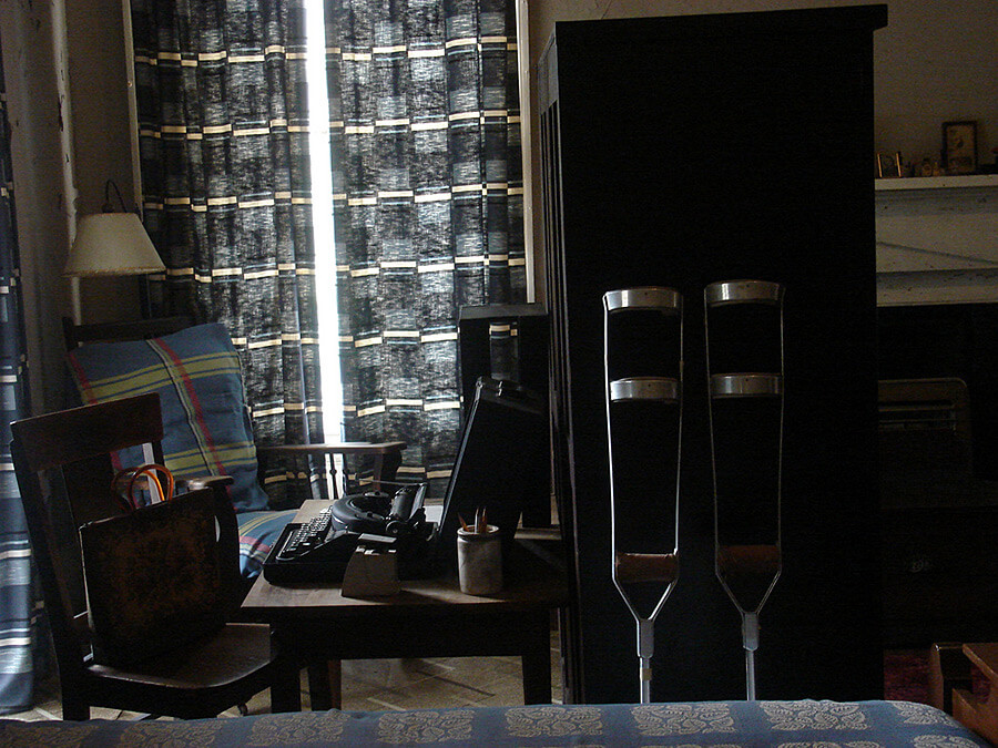 Flannery O'Connor's bedroom at Andalusia, her home in Milledgeville, Georgia. Photograph by pdoyen, November 12, 2008. Courtesy of pdoyen. | The porch at Andalusia, Flannery O'Connor's home in Milledgeville, Georgia. Photograph by pdoyen, November 12, 2008. Courtesy of pdoyen. |