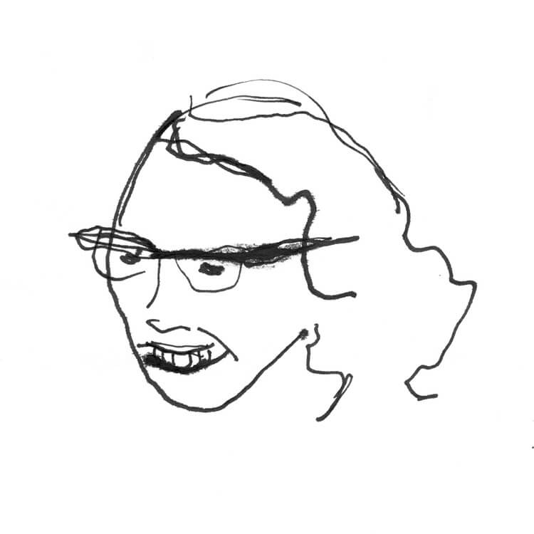 During a July 29 event to promote the zine's release, writer Johnny Drago read a short fictional piece, "The Name of This is a Sacred Relic," inspired by Travis Ekmark's art for the zine. Drago describes his story as "about two friends, two writers who go down to Milledgeville, Georgia looking for inspiration. Of course, they come back with something completely different. The story is essentially based on the Instagram feeds of some friends of mine who visited Andalusia and the Central State mental hospital recently, and the parallel, vicarious visit I had in my head as I scrolled down."7Johnny Drago in discussion with the author, September 2014. Whereas some of the portraits for the Zine explore the more eccentric sides of O'Connor, Ekmark's portrait on which Drago's story is based is startling in its simplicity—a solid background with a black-ink drawing in the foreground—and as such, Drago's story follows an age old plot: two friends go on a journey from which they return changed.