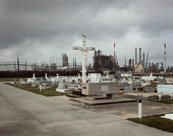 Richard Misrach, Holy Rosary Cemetery and Dow Chemical Corporation (Union Carbide Complex), Taft, Louisiana, 1998 from Petrochemical America, photographs by Richard Misrach, Ecological Atlas by Kate Orff (Aperture, 2012). © Richard Misrach, courtesy of Pace/MacGill Gallery, New York; Fraenkel Gallery, San Francisco; and Marc Selwyn Gallery, Los Angeles. |