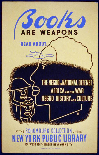 Books Are Weapons, poster by NYC WPA War Services, 1941–1943. Courtesy of the Library of Congress, Prints and Photographs Division, WPA Posters Collection, LC-USZC2-1124. |