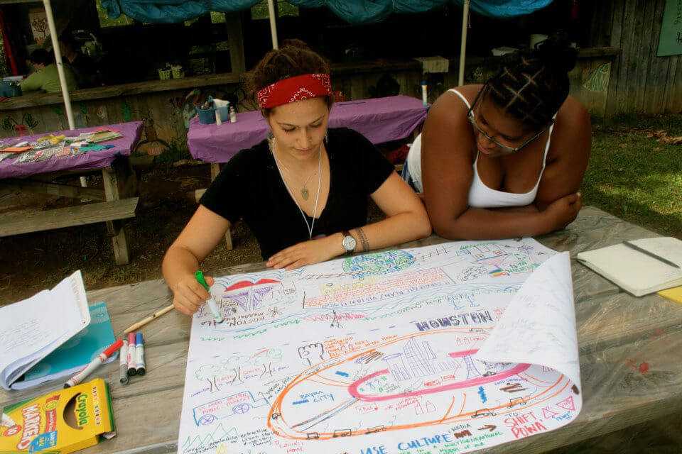 Adina Hemley-Bronstein and Elandria Williams mapping community, STAY Summer Institute, High Rocks Camp, Hillsboro, West Virginia, Summer 2012. Photograph courtesy of the STAY Project. |