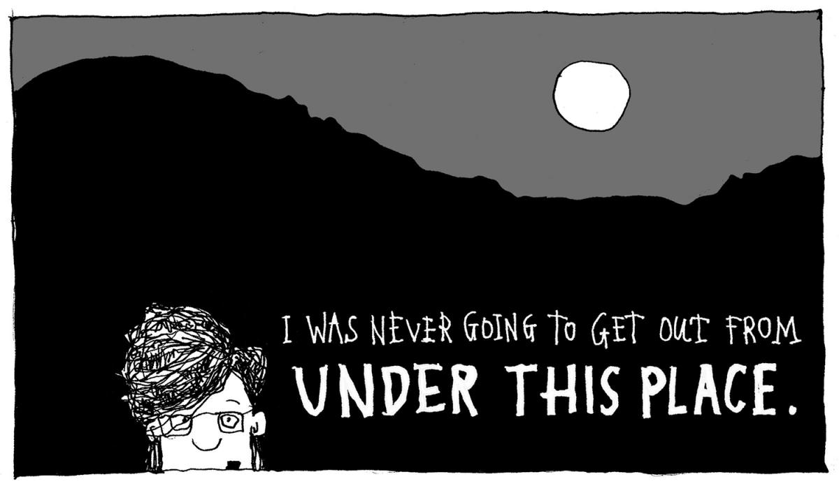 "I had had my fill of Canard County," fifteen-year-old Dawn Jewell proclaims in the opening cartoon panel of Trampoline (1). Canard County is a fictional county in Eastern Kentucky. It's rural, poor, and white. Coal mining, unemployment, drug addiction, and religious fervor dominate the landscape and the culture. It is, in other words, straight-up Appalachia. But as Trampoline embraces its Appalachian-ness, it also questions commonly held notions of what it means to be Appalachian. Its combination of prose narrative and quirky illustrations delivers a unique storytelling form, and the insightful, hilarious, and honest protagonist Dawn Jewell makes Trampoline unforgettable.