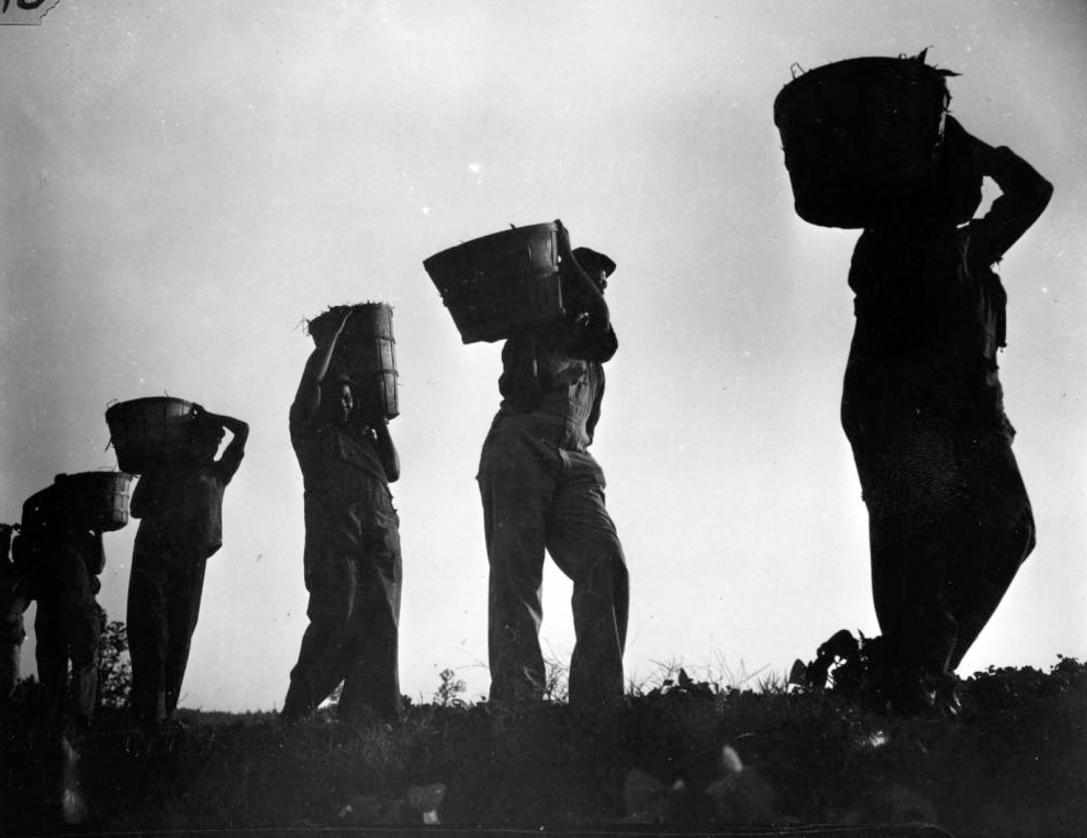 African-American women carry hampers of beans, Georgia's prisons, Georgia, November 3, 1940. Copyright Atlanta-Journal Constitution. Courtesy of Georgia State University Library, Photographic Collection, Special Collections and Archives, Atlanta Journal-Constitution Photographic Archives, digitalcollections.library.gsu.edu/cdm/ref/collection/ajc/id/611/rec/53.