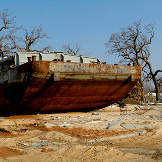 Barge washed ashore after Hurricane Katrina, Gulfport, Mississippi, 2005