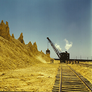Nearly exhausted sulphur vat from which railroad cars are loaded, Freeport Sulphur Co., Hoskins Mound, Texas, 1943