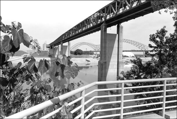 ![]() | The Mississippi River In the distance is the Interstate 40 Mississippi River Bridge. The "bridge" entering the picture from the upper right is actually the tramway that runs from downtown Memphis to Mud Island River Park. |